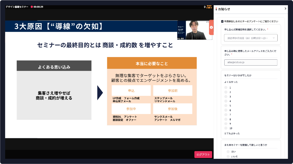ウェビナーなら、あなたが持つ営業トーク・提案の流れ・クロージングの空気感を“型”として残せます。